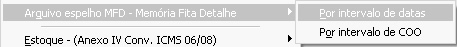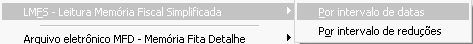 Leitura da Memória Fiscal Simplificada por intervalo de data ou por intervalo de redução Z - Esta opção permite que o usuário escolha sedeseja imprimir a leitura da memoria fiscal ou quer gravá-la em arquivo no formato espelho.