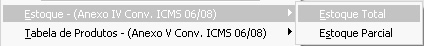 Estoque – (Anexo IV Conv. ICMS 06/08) - O relatório de estoque está disponibilizado em Estoque Total e Estoque Parcial conforme imagem abaixo.