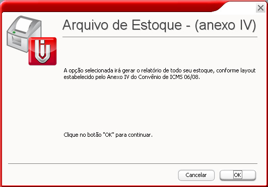 Tabela de Produtos - Irá gerar o relatório de todo o estoque conforme Layout estabelecido no convênio do ICMS 06/08.