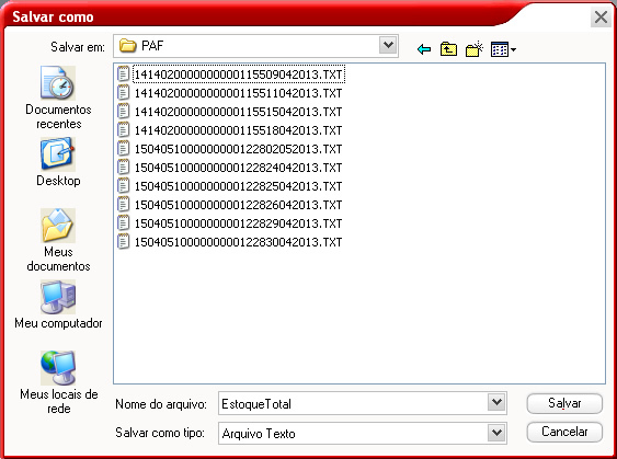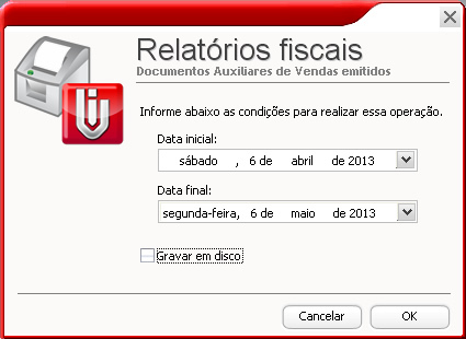 Veja abaixo a tela para seleção do período, onde tem a possibilidade de salvar o arquivoem disco conforme a imagem abaixo.
