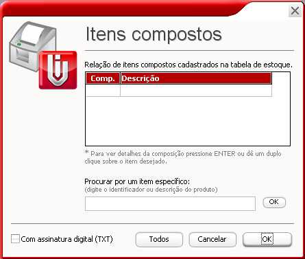 Tabela de índice técnico de produção - Nesse relatório é apresentada a relação de itens compostos na tabela de produtos no estoque.