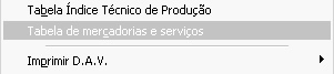 Relatório de Tabela de Mercadorias e serviços.