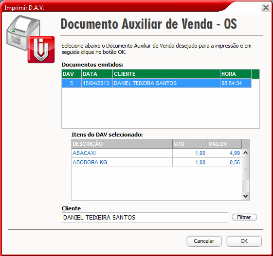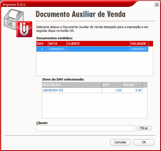 Imprimir DAV - Permite imprimir o Orçamento, DAV-OS ou Pedido de Venda no micro onde tem o equipamento ECF.