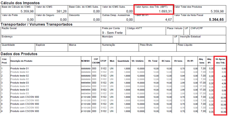 Conforme regulamentação da Lei nº 12.741, de 8 de dezembro de 2012, novo decreto nº 8.264, de 5 de junho de 2014 esses valores também serão destacados separadamente por Valores Aproximados: Federal Estadual e Municipal.