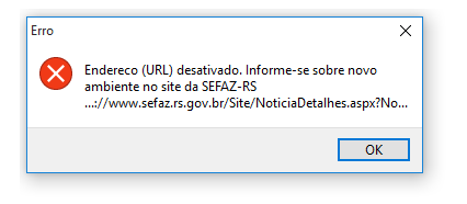 Palavras-chave: Endereço (URL) desativado. Informe-se sobre o novo ambiente no site da SEFAZ-RS, ERRO 999 ENDEREÇO URL DESATIVADO.