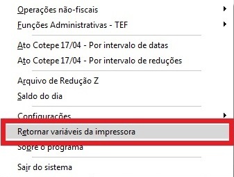 Acesse o Emissor de Cupom Fiscal / Pressione F10 / Retornar variáveis da Impressora;