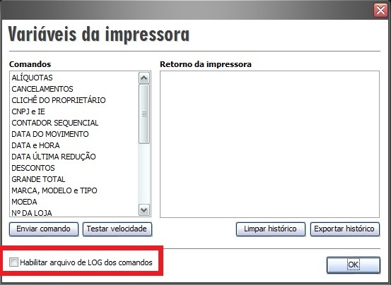Marque a opção Habilitar arquivo de LOG dos comandos;