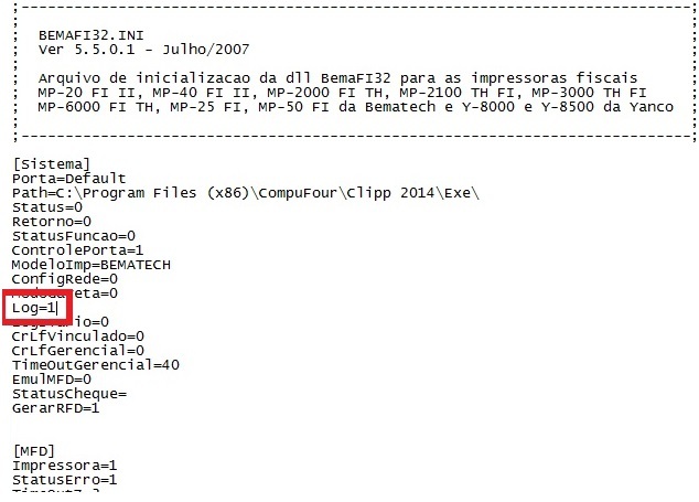 Arquivos de LOG do Clipp e Impressoras Fiscais Bematech