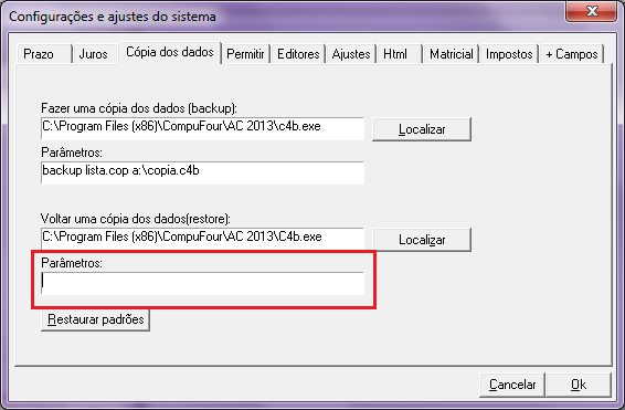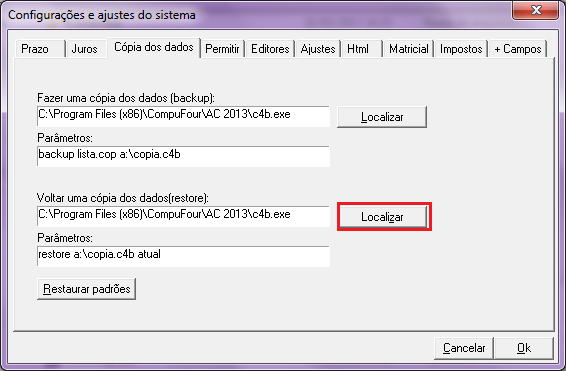 IMPORTANTE: O arquivo de backup deverá possuir a extensão .C4B. Ex: COPIA.C4B ou 12072013.C4B.