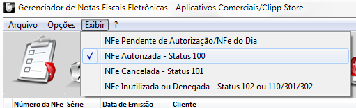 Clique no menu Exibir / NFe Autorizada – Status 100;