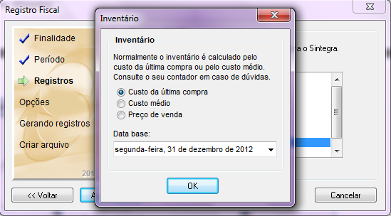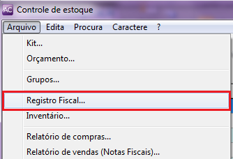 Para efetuar a geração do arquivo, basta acessar o módulo de Estoque, Menu Arquivo / Registro Fiscal;