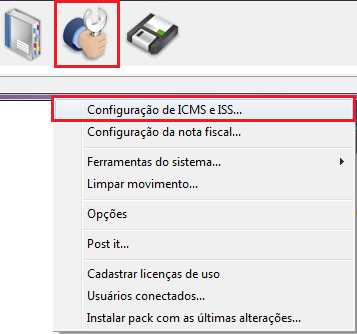 Primeiramente será necessário cadastrar os CTIs que serão utilizados. Para isso acesse Configurações e Ajustes / Configuração de ICMS e ISS.