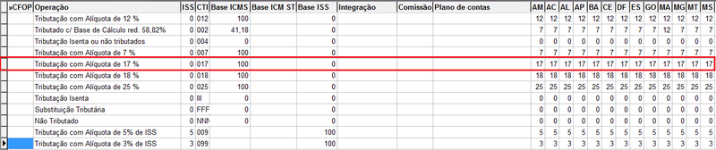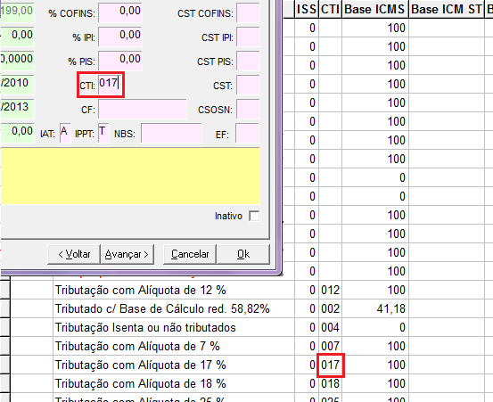 O campo CTI (Código de Tributação Interna) é utilizado para definir a situação tributária do item, se ele será tributado com alguma alíquota de ICMS especifica ou se o item será Isento, Não tributado ou com Substituição tributária.