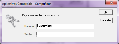 Informe a senha do Supervisor, caso não tenha a senha cadastrada, cadastre-a neste momento (será necessário reconfirma-la).