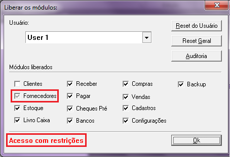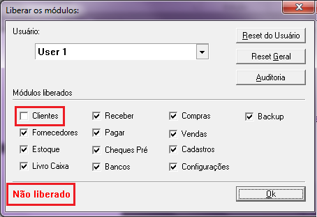 Para que não tenha acesso, basta desmarcar o módulo desejado.