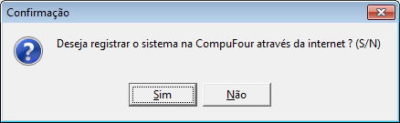 Será apresentada uma mensagem solicitando se deseja registrar o sistema através da internet. Clique no botão "Sim" para enviar o registro.