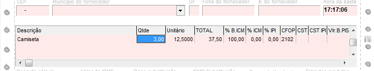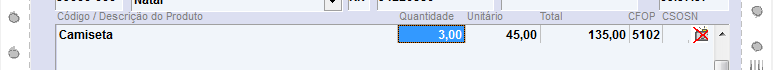 Ao clicar em ok, será apresentado o item, bem como a quantidade total do mesmo que foi adicionado na grade, neste exemplo, quantidade 3.