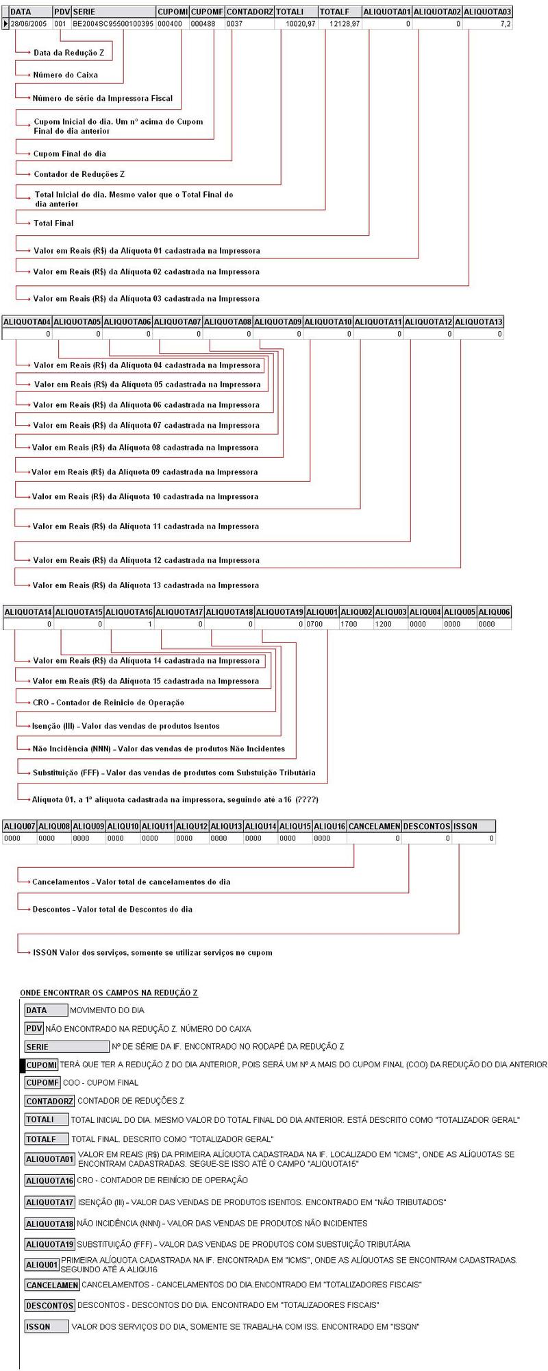 Localize as reduções Z impressas no mês, e lance no arquivo de reduções os valores, conforme instruções abaixo.