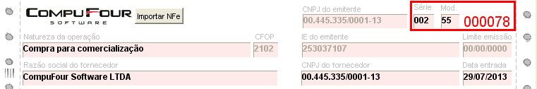 O número da nota deve ser a sequência da última nota criada (78), a série deve ser a mesma utilizada na venda (2) e o modelo 55;