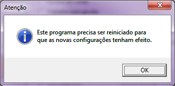 Após configurado, é necessário reiniciar o ECF, conforme mostra na mensagem.