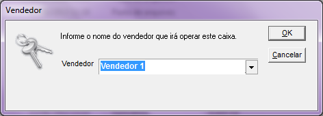 Feito isso, ao abrir o ECF, será solicitado o nome do vendedor, selecione o mesmo e clique em Ok. Desta forma, todos os cupons emitidos serão comissionados para o vendedor selecionado nesta tela.
