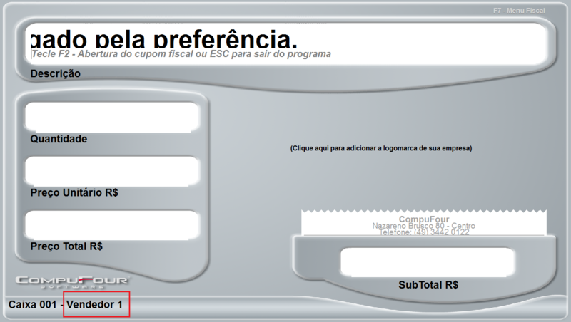 Informando vendedor no Cupom Fiscal