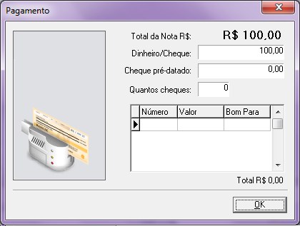 Após clicar em ok, serão solicitadas as informações referentes ao Cheque (conforme primeira imagem deste tutorial).