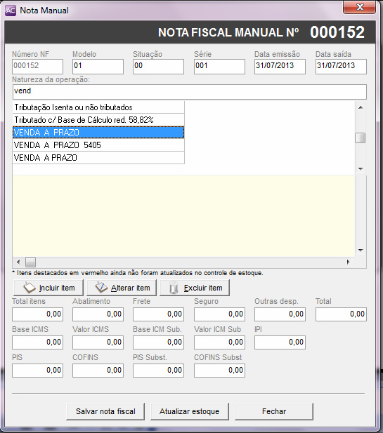 Nota Manual - NF Manual - Aplicativos Comerciais