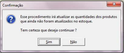 Clique em sim na mensagem, e lhe aparecerá a mensagem de confirmação, como abaixo. Clique em ok e então o estoque dos produtos terá sido atualizado.