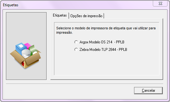 É possivel imprimir etiquetas para o estoque usando a impressora térmica de bobina Argox OS-214 (configurada para script PPLB). A impressão pode ser feita em um dos modelos pré-configurados abaixo: