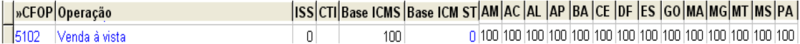 Após o cadastro do produto devemos cadastrar uma nova CFOP, informando “100” na Base de ICMS e na alíquota de ICMS de todos os estados. Para mais informações sobre o cadastro da CFOP, clique aqui.