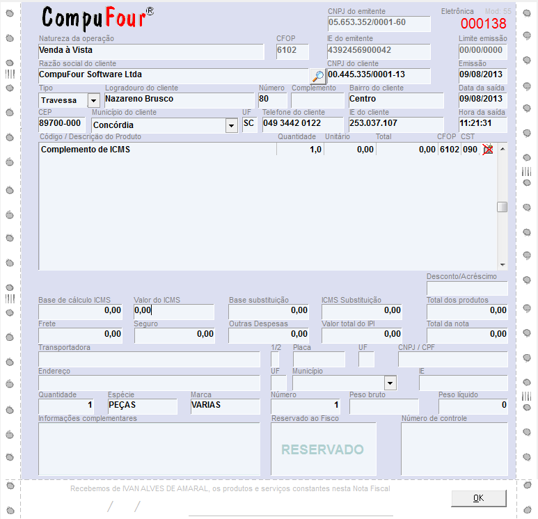 Nesse caso os valores da nota fiscal ficaram zerados.