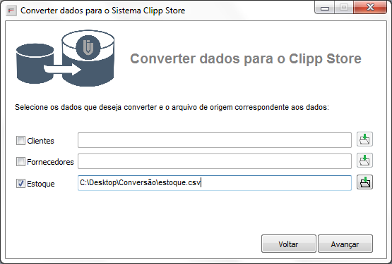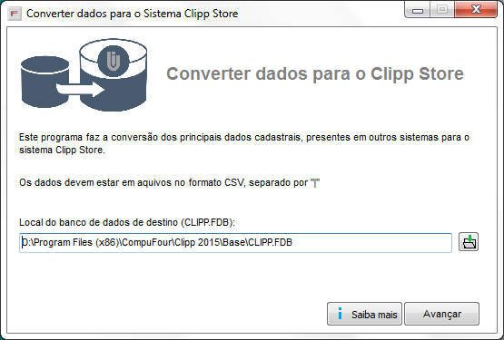 A partir do Novo Conversor será possível realizar a conversão de seus dados diretamente para o banco de dados do Clipp Store a partir de um arquivo no formato CSV.