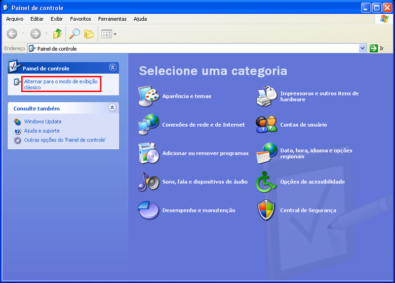 3. Clique sobre a opção Alterar para o modo de exibição clássico, como mostra imagem abaixo: