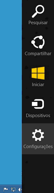 1. Leve o cursor do mouse até o lado direito da tela na parte inferior e aparecerão algumas opções, clique em Configurações;