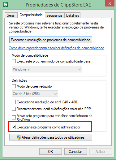 3. Acesse a guia Compatibilidade e marque apenas a opção Executar com Administrador.