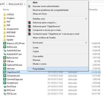 2. Será aberta a pasta do sistema, então clique com o botão contrário do mouse sobre o executável / Propriedades;