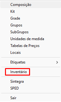 Acesse o módulo de Estoque e clique no Menu Arquivo - Inventário.