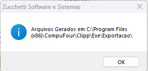 Caso escolha exportar para CSV ou PDF, irá salvar o arquivo na pasta "Exportacao", disponível na pasta principal do Clipp.
