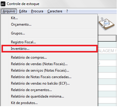 Clique no Menu Arquivo / inventário;