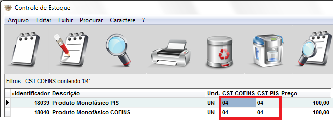 Feito isso, localize na coluna de CST PIS ou CST COFINS o código 04 (CST correspondente a produtos monofásicos);