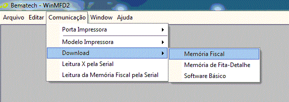 Depois de configurado, acesse Comunicação > Download > Memória Fiscal