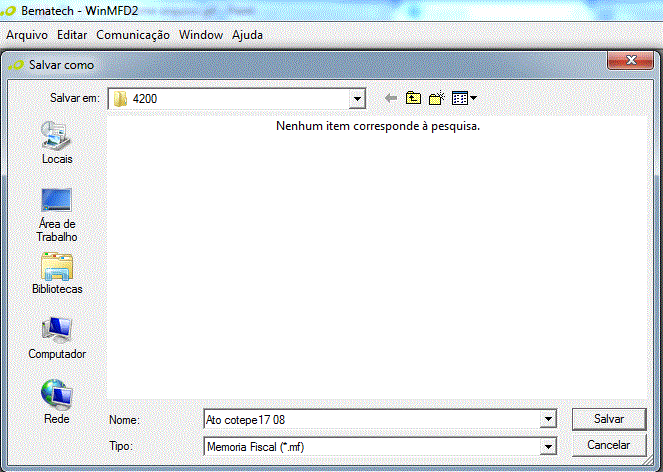 GERAÇÃO DO ARQUIVO ATO COTEPE 17/04 BEMATECH 4200 TH FI