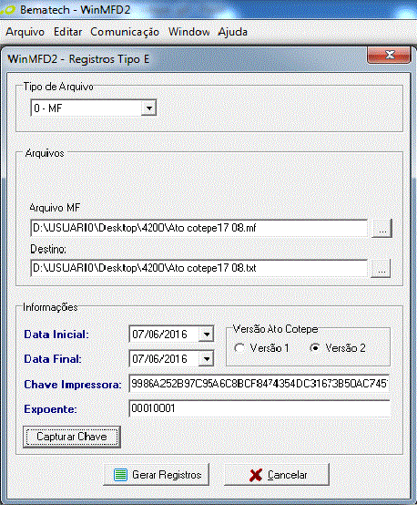Qualquer dúvida em relação a geração destes arquivos consulte um técnico autorizado da Bematech.
