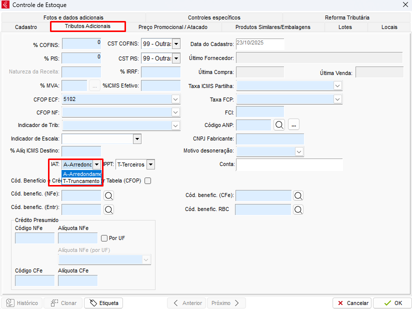 O arredondamento ou truncamento pode ser configurado no item do estoque no Cadastro do Produto > Tributos adicionais > IAT.