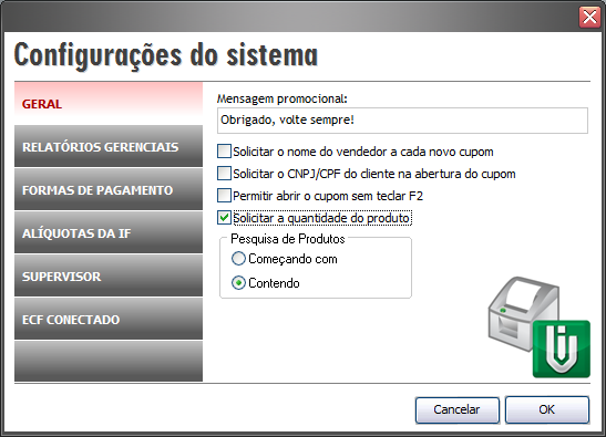 Para que seja solicitada a quantidade de itens vendidos ao lança-los no Cupom Fiscal é necessário efetuar uma configuração.