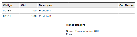 No romaneio de cargas são apresentados os itens e suas quantidades totalizadas, dessa forma é possível saber a quantia total de cada produto que consta na carga. Veja um exemplo abaixo: