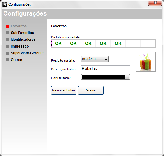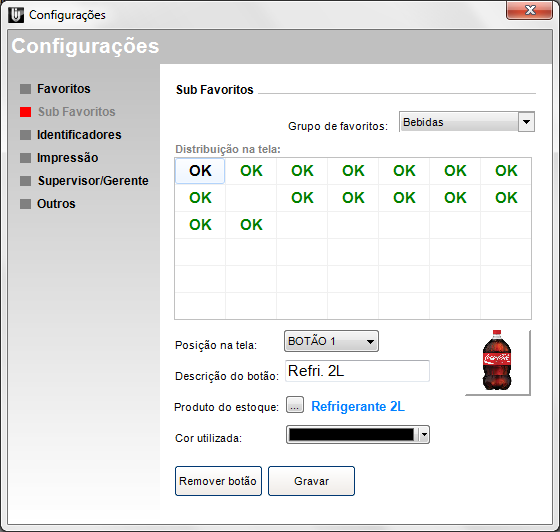 OBS: Caso desejar excluir um botão utilize a opção Remover botão. Após efetuar a configuração desejada basta clicar em Gravar.