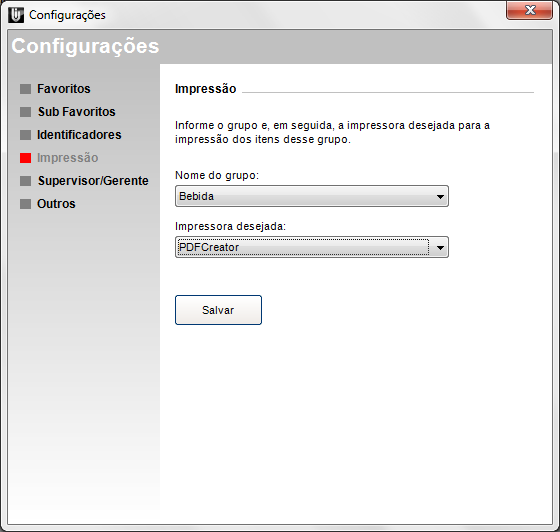 Nessa tela podemos configurar o Grupo (já configurado no cadastro dos produtos no Clipp Store) e aonde ele será impresso. No exemplo acima temos o Grupo Lanches sendo impresso na impressora configurada no windows como Impressão Copa. Vale lembrar que essa relação das impressoras na Impressora desejada busca todas as impressoras configuradas no computador atual inclusive as impressoras da rede. Após efetuar a configuração desejada basta clicar em Salvar.
