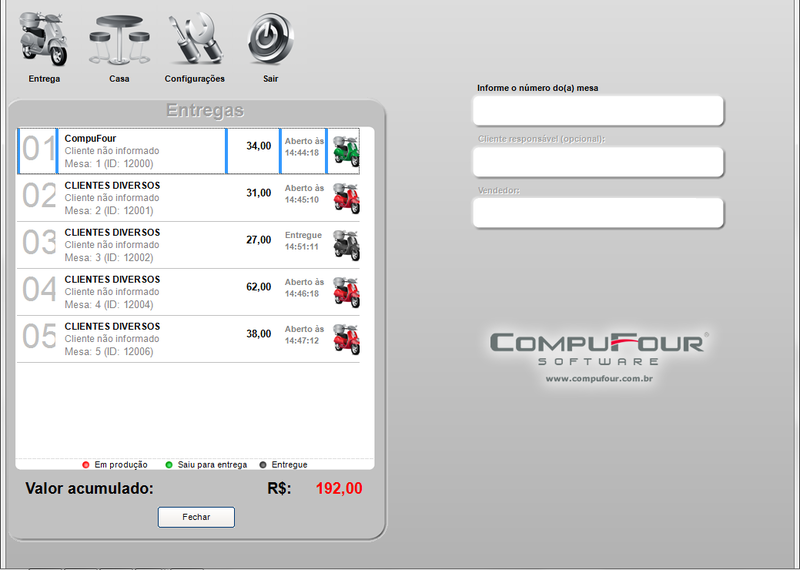O primeiro passo é informar o número do identificador (comanda, mesa, cartão), após informar o cliente (não é um campo obrigatório, nesse caso se o cliente não estiver cadastrado irá assumir a descrição Clientes Diversos) e em seguida informar o código do vendedor, após pressionamos enter para iniciar o lançamento dos itens.